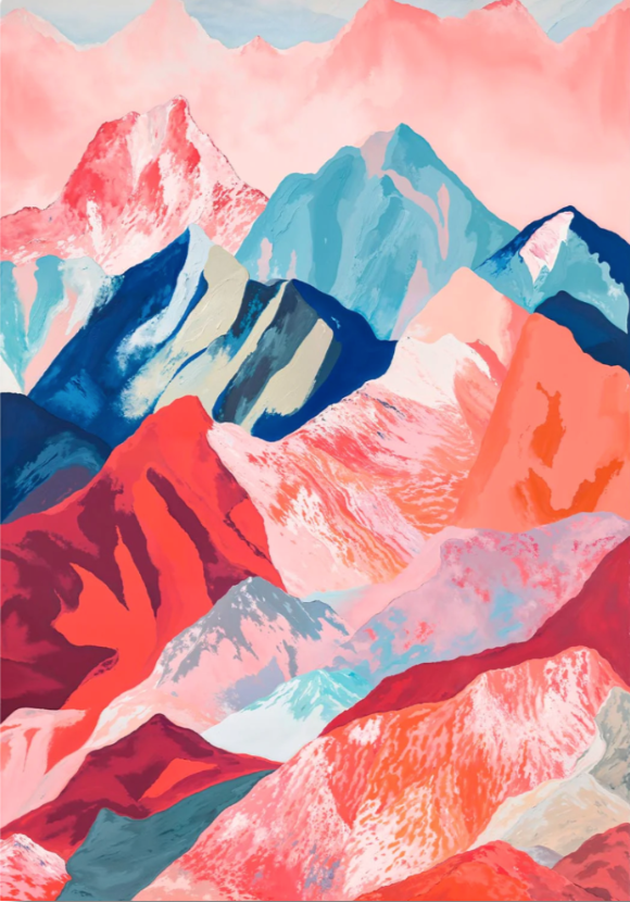 Mountains, but make them magical. This kit blends fiery reds, icy blues and dreamy pinks into a surreal landscape that glows.
